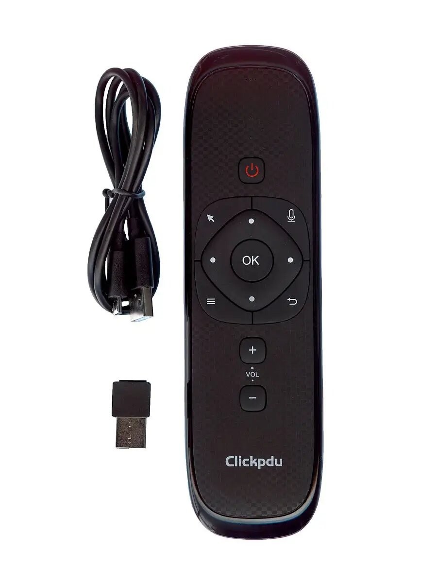ClickPDU W2 Air Mouse - **Типы поддерживаемых устройств: Персональные компьютеры (ноутбуки), Android TV Box приставки, мобильные устройства с функцией OTG, телевизоры Smart TV с операционной системой Android.****Внимание! Голосовой поиск не работает на телевизорах марок Samsung и LG ( и других телевизорах работающим не на Android)****Беспроводная аэромышь - управление курсором****Тачпад для управления курсором****Голосовое управление****Кириллическая qwerty клавиатура****Возможность обучения кнопок от ИК сигнала другого пульта****Питается от встроенного li-ion аккумулятора****Функция поиска пульта****Регулировка скорости курсора для Вашего удобства****Пульт подключается с помощью передатчика, который устанавливается в свободный USB слот устройства. Комплектация: Пульт ДУ, USB передатчик, шнур USB, инструкция на русском языке.**