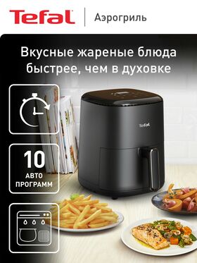 Аэрогриль Tefal Easy Fry Compact Ey145810 - незаменимый помощник в приготовлении любимых полезных блюд с аппетитной корочкой! Благодаря оптимальному распределению потоков горячего воздуха аэрогриль готовит еду на 39% быстрее, чем в духовке. Готовые блюда получаются с хрустящей корочкой, при этом с минимальным добавлением масла или совсем без него. Бытовая техника для кухни имеет 10 автоматических программ, которые порадуют любимой едой, а таймер и LCD-дисплей помогут контролировать время приготовления блюда. Чаша аэрофритюрницы объемом 3 литра идеальна, чтобы приготовить себе или компании из 4-х человек любимое угощение: от хрустящего картофеля фри и запеченного мяса, до сырников и сладких десертов. Чашу с антипригарным покрытием и решетку можно мыть в посудомоечной машине, что обеспечивает удобство и простоту в уходе за прибором. В комплекте с домашней фритюрницей Тефаль есть онлайн-книга с рецептами, которая поможет разнообразить ваше меню. Просто отсканируйте QR-код с помощью смартфона и получите доступ к быстрым и вкусным рецептам на каждый день, которые обязательно захочется попробовать вместе с друзьями и близкими. Станьте настоящим шеф-поваром с аэрогрилем для дома Tefal Easy Fry Compact!