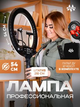 Кольцевая светодиодная лампа — это отличный выбор для фотографов, блогеров, мастеров по маникюру и других специалистов, которые работают с видео- и фотосъемкой. Этот товар представляет собой кольцевой светильник с диаметром 54 сантиметров и штативом, который позволяет легко настроить нужное положение лампы.