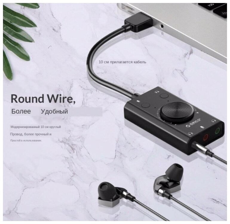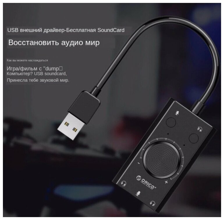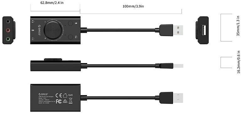 Миниатюрная внешняя звуковая карта Устройство оснащено регулятором громкости и кнопками отключения звука для микрофона и наушников, тремя разъемами mini jack 3,5мм. Для начала работы установки дополнительных драйверов не требуется. У вас всегда будет качественный звук Если звуковая карта вашего компьютера или ноутбука вышла из строя, просто подключите ORICO SC2 к USB-разъему. Слушайте музыку с друзьями ORICO SC2 имеет три порта mini jack 3,5мм для подключения гарнитуры, микрофона и наушников, поддерживает одновременную работу двух устройств, что позволяет подключить две пары наушников для совместного прослушивания любимых саундтреков. Плавная регулировка громкости Для удобства использования на лицевой панели ORICO SC2 установлен регулятор громкости, обеспечивающий точную настройку, а также кнопки для отключения звука микрофона и/или наушников. Простое управление В случае необходимости вы можете мгновенно отключить микрофон и/или наушники, нажав на соответствующие кнопки. На корпусе имеется индикация со следующими обозначениями: синий светодиод — наушники подключены; красный светодиод — микрофон отключен. Совместимость Поддержка стандартов TRS/TRRS позволяет использовать ORICO SC2 для воспроизведения звука с настольного компьютера, ноутбука и планшета через наушники, гарнитуру и другие звуковоспроизводящие устройства. Примечание. ORICO SC2 поддерживает работу с гарнитурами, соответствующими национальному стандарту OMTP, поэтому при подключении гарнитур стандарта CTIA функция микрофона может быть недоступна. Для уточнения поддерживаемого стандарта обращайтесь на сайт производителя гарнитуры. Удобное подключение Для надежного подключения используется кабель круглого сечения длиной 10см. Легкая установка Не требует установки драйверов и дополнительного программного обеспечения. Просто подключите ORICO SC2 к USB-разъему и наслаждайтесь звуком. Поддерживается большинством операционных систем: MS Windows XP/Vista/7/8/10, Chrome OS, MAC, LINUX.