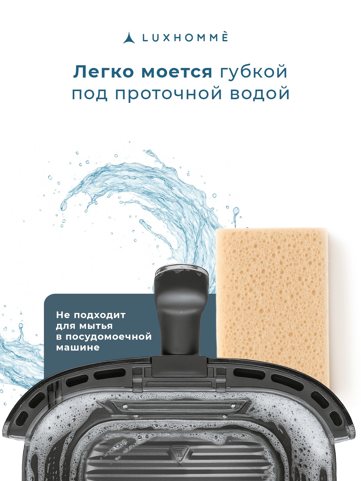 Аэрогриль со съемной чашей с антипригарным покрытием и решеткой за которым легко ухаживать, чистить и мыть. Эргономичная электрическая фритюрница с двумя стеклянными окнами позволят контролировать процесс приготовления, ручка с термоизоляцией не нагревается и убережет от ожогов. Отличный аналог аэрогриль xiaomi, аэрогриль kitfort, аэрогриль demiand