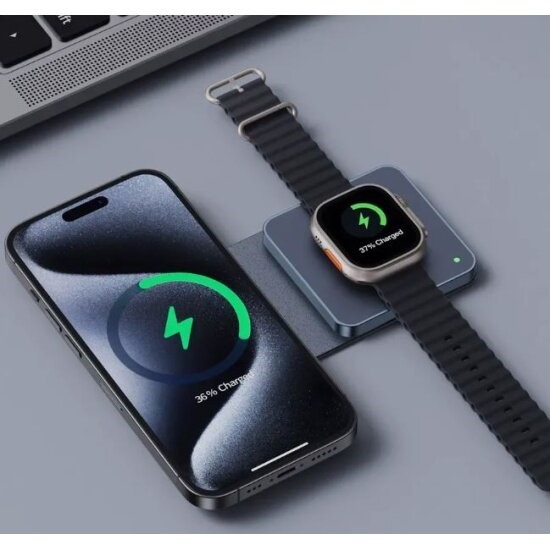 Беспроводное зарядное устройство Deppa 2 в 1 MagSafe Mini Fold Travel QI складная, черный
