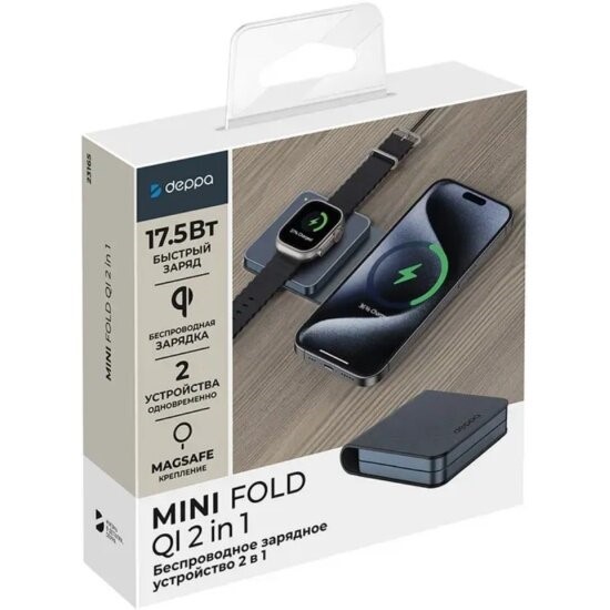 Минимальное количество для товара "Беспроводное зарядное устройство Deppa 2 в 1 MagSafe Mini Fold Travel QI складная, черный" 1.