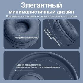 Наушники можно с комфортом носить в течение длительного времени благодаря легким материалам, мягким подушечкам и оголовью с наполнителем. Складная конструкция позволяет носить наушники где и когда угодно и при этом наслаждаться любимой музыкой.