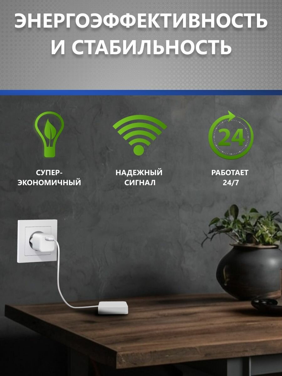 - ✅ Экономит энергию — потребляет меньше 2 Вт, не греется, работает 24/7.