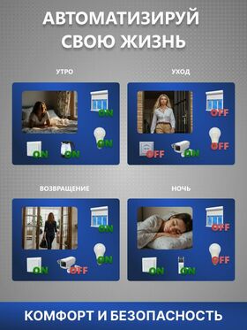 - ✅ Автоматизация сценариев — включите отопление к вашему приходу, активируйте сигнализацию при уходе.