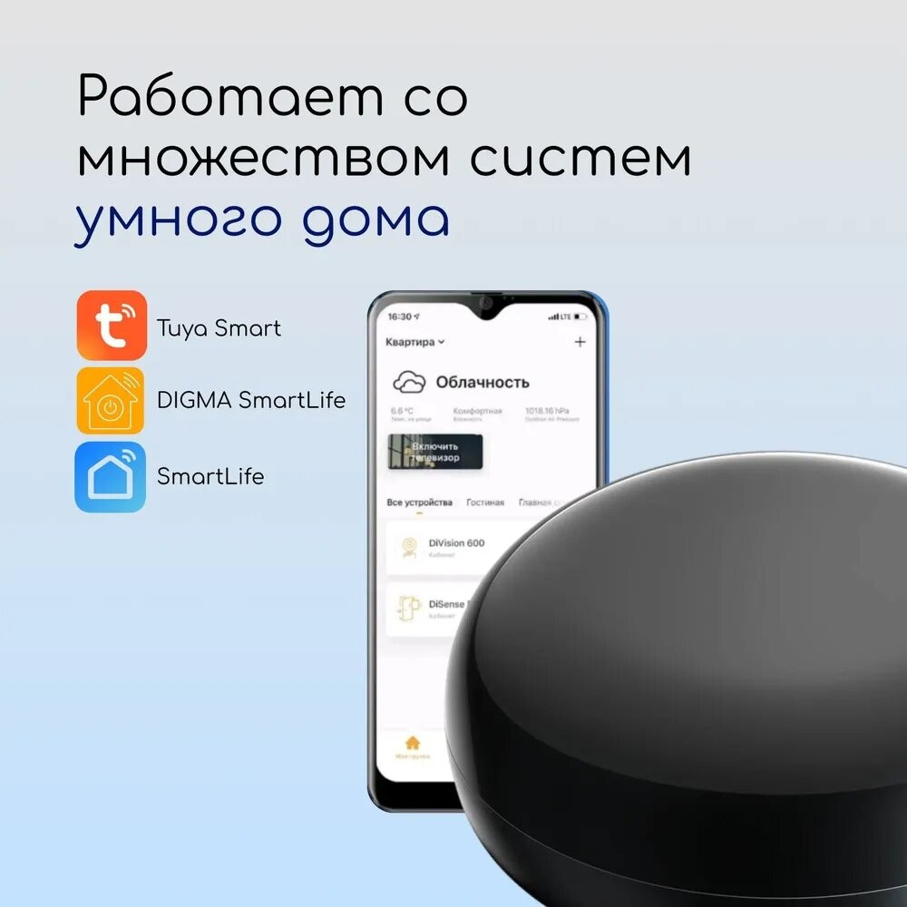Инфракрасный пульт дистанционного управления Tuya - это незаменимый помощник для вашего умного дома. Он обеспечивает удобное и эффективное управление различными устройствами, такими как телевизоры, кондиционеры, умные пылесосы и многие другие, оснащенными ИК-датчиками с помощью популярных голосовых помощников. Таким образом, можно построить систему умный дом с Алисой и другими помощниками. Благодаря голосовому управлению вы можете легко управлять телевизором, переключая каналы, регулируя громкость и даже включая и выключая его. Вы можете давать команды Алисе, и она выполнит их за вас. Умный пульт Tuya также позволяет управлять устройствами в определенное время (задавать включение света в определенное время и т. д.), что делает его идеальным для автоматизации вашего дома. С помощью вашего смартфона вы сможете управлять системой умного дома. Также это устройство может быть аналогом для такого умного устройства как умный пульт Яндекс. Пульт Tuya поддерживает совместное использование устройств, что позволяет нескольким пользователям управлять одним устройством. Это удобно для семей и групп друзей. Технические Характеристики устройства: - Радиус действия и ИК датчик 360° обеспечивают широкий охват управления - Совместимость с различными устройствами в вашей системе умного дома - Поддерживаемые устройства: Android 4.0 / iOS 8.0 и выше - Способ подключения: Wi-Fi 2,4 ГГц, 802.11 b/g/n - Диапазон рабочих температур: от 0°C до +50°C - Модель: JJ003 - Размер: 63x63x24 мм Инфракрасный пульт Tuya работает в паре с другими устройствами в вашей системе умного дома, обеспечивая разнообразные возможности управления, включая голосовое и дистанционное управление. Таким образом, инфракрасный пульт Tuya представляет собой передовое решение для вашего умного дома, обеспечивая комфорт, удобство и широкие возможности при создании и управлении системой умный дом.