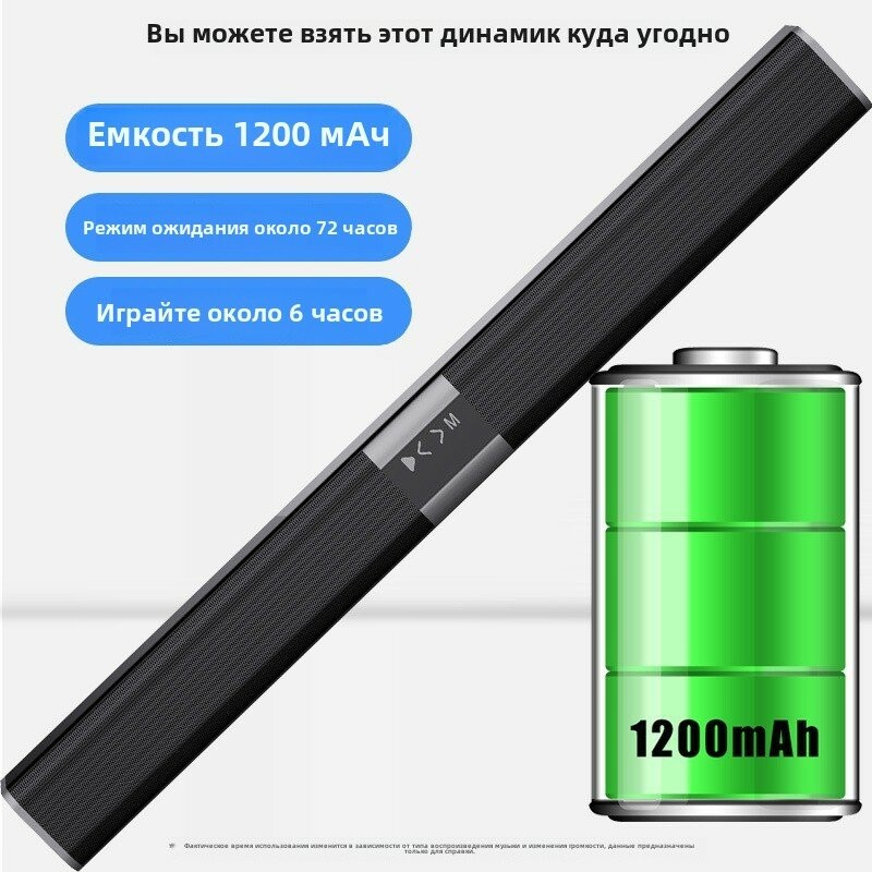 Саундбар с аккумулятором 1200 мАч, Bluetooth, объёмным звуком и компактным дизайном — для телевизора и дома