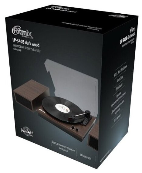 Поддержка Bluetooth есть Особенности Традиционное воспроизведение пластинок и современные цифровые технологии объединяют проигрыватель винила RITMIX LP-340B Dark wood. Эта модель отличается частично автоматическим типом работы, элегантным тонким корпусом и двумя отдельными колонками с хорошим мощным звуком 2 x 10 Вт.