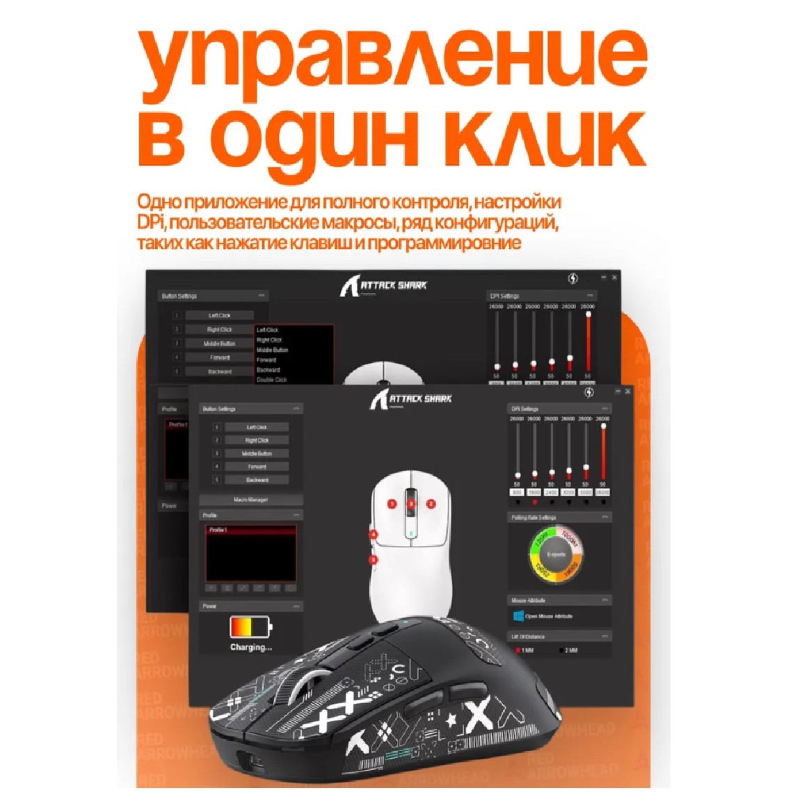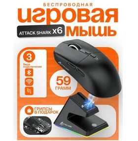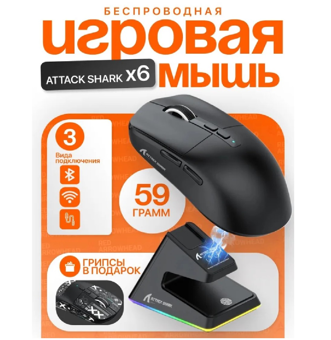 Минимальное количество для товара "Игровая мышь Attack Shark X6 Black черный USB, Радиоканал, Bluetooth" 1.
