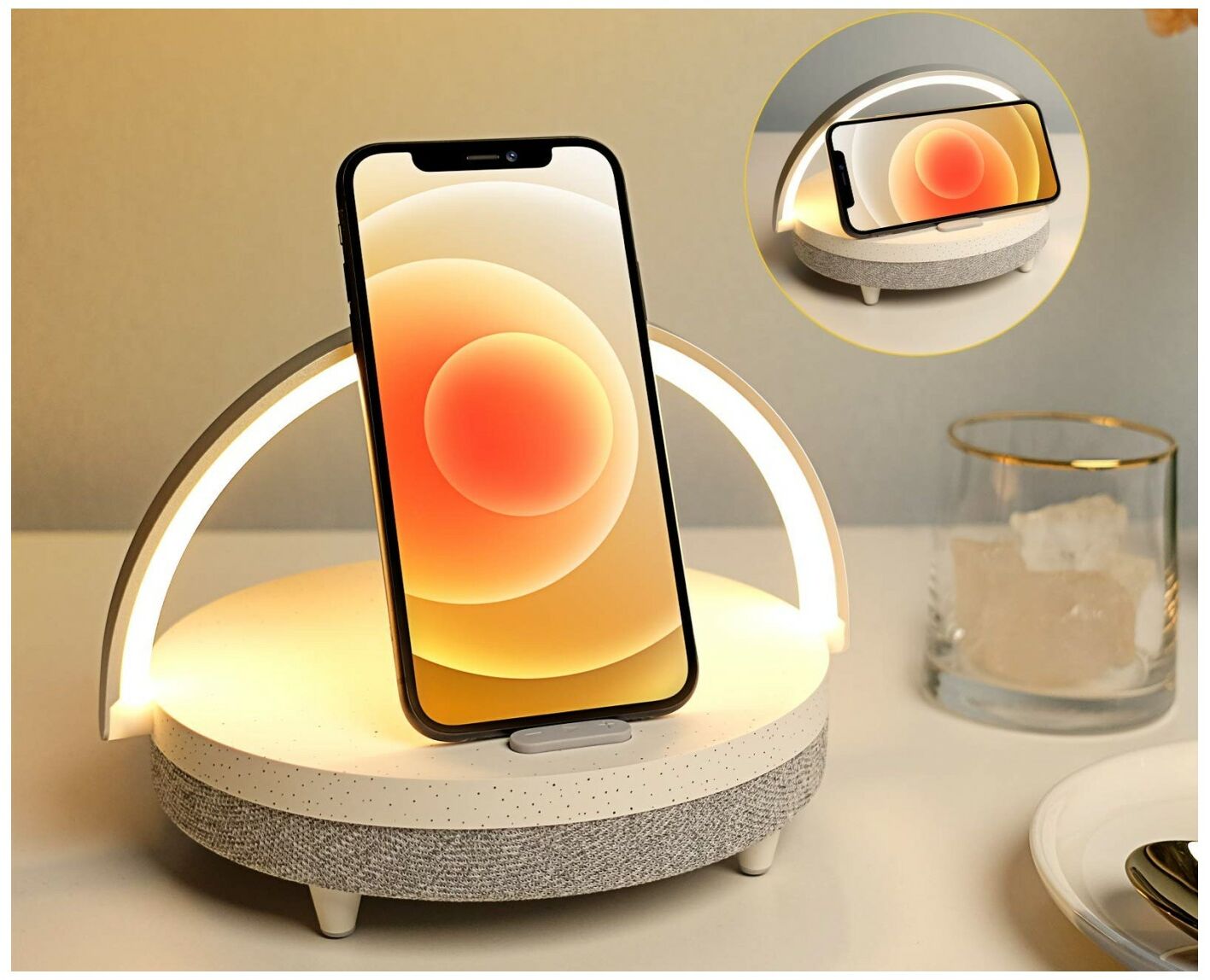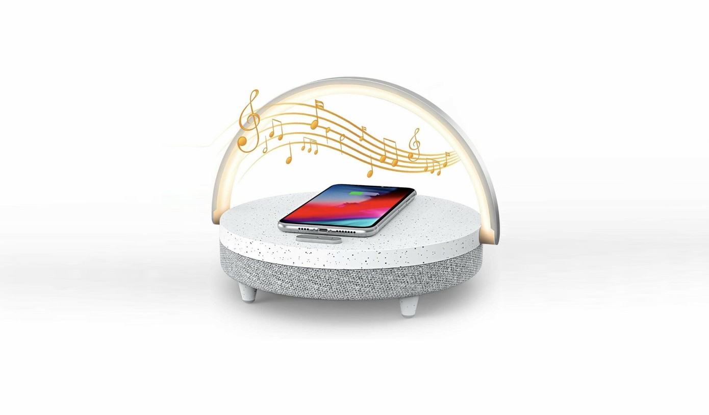 Колонка с функцией беспроводной зарядки Xiaomi Ezvalo Wireless Charging Music Desk Lamp Marble может выступать и беспроводной зарядкой, и настольной лампой, и Bluetooth-колонкой, и подставкой для телефона с регулируемым углом наклона! С помощью беспроводной зарядки можно подзарядить телефон с нуля до 90% или же просто увеличить время его автономной работы. Блютуз-колонка проста в использовании: просто нажмите, для того чтобы прибавить громкости, или нажмите и удерживайте, чтобы переключить песню. Девайс в качестве колонки поддерживает связь с телефоном на расстоянии 10 метров. Помимо всего этого функционала, устройство поможет вам просматривать видео на телефоне с комфортом, поскольку является держателем для телефона. Ezvalo заряжается зарядкой Type-C.