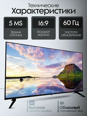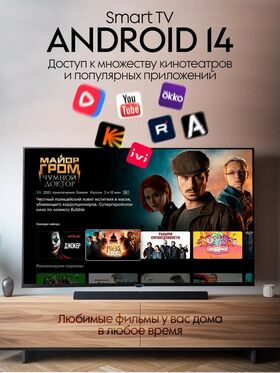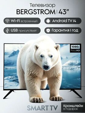Кронтшейн для телевизора дарим в подарок! Телевизор SMART TV FULL HD 43" Wi-Fi, USB, Android TV 14 подарит вам незабываемое впечатление от просмотра любимых фильмов и сериалов. Его 43-дюймовый экран с разрешением FULL HD обеспечит кристально чистую и детализированную картинку, а технология Android TV откроет доступ к огромному количеству приложений и онлайн-сервисов. Подключитесь к интернету по Wi-Fi, наслаждайтесь любимым контентом и играми на большом экране. USB-порт позволит просматривать фото и видео с внешних носителей, а удобный пульт дистанционного управления обеспечит комфортное управление.