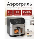 Аэрогриль электрический 6 литров, с сенсорной панелью, 1500 Вт аэрогриль электрический