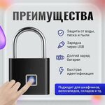 Навесной электронный замок с отпечатком пальца, цинковый сплав, чёрный
