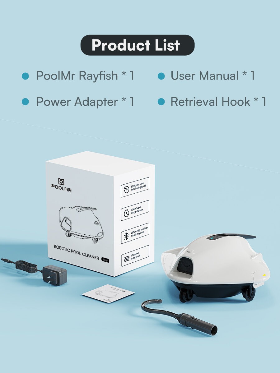 *Долгая работа и безопасность: Аккумулятор 2500 мА·ч — время работы более 60 минут (достаточно для полной очистки бассейна). Зарядка за 5 часов. Защита двигателя: индикатор должен быть погружен в воду для работы. Если устройство не находится в воде, оно автоматически отключится через 60 секунд, предотвращая холостой ход и разрядку аккумулятора.