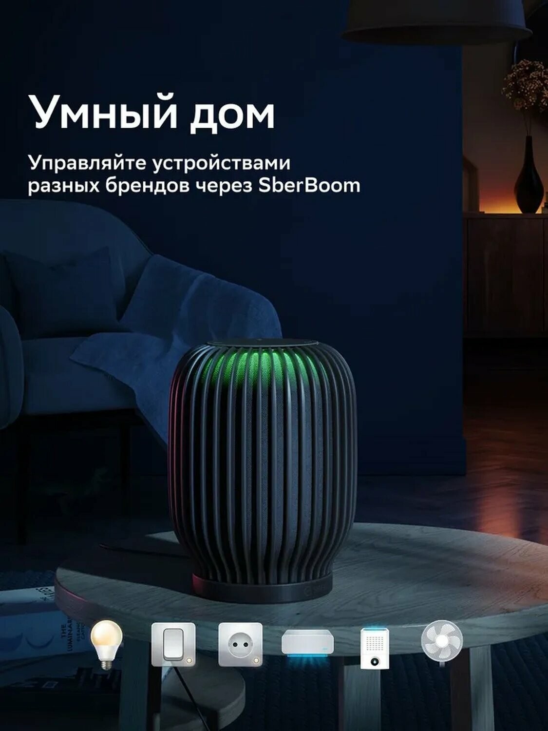Умная колонка SberBoom 40 Вт – это многофункциональное устройство, сочетающее в себе функции музыкального центра и голосового помощника.