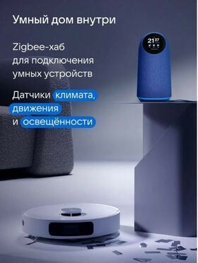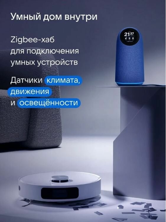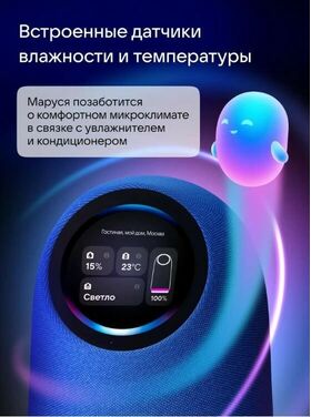 Умный дом в колонке. Встроенный Zigbee-хаб объединит умные устройства от 70+ брендов, чтобы вы управляли ими голосом. А встроенные датчики влажности, температуры, движения и освещённости выведут домашний комфорт на новый уровень.
