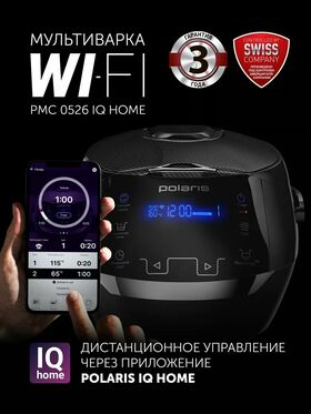 Wi-Fi мультиварка.300 режимов приготовления.700+ рецептов в приложении IQ Home от поваров журнала Гастроном. Wi-Fi управление без дополнительного оборудования. Из любой точки мира. Любое количество пользователей. Подробная информация о работе мультиварки в приложении Polaris IQ Home: Загрузить в App StoreЗагрузить в Google Play21 автоматическая программа приготовления. Функция «Мой Рецепт PLUS». Режимы работы: Мой рецепт plus, Выпечка, Суп, Тушение, Жарка, Запекание, Холодец, Йогурт, Варенье, Варка на пару, Молочная каша, Крупа, Подогрев, Плов, Омлет, Томление, Настойка, Хлеб, Жарка в масле, Су-вид, Овсянка. Сохранение программы при сбое электропитания 2 часа. Лицензионное керамическое покрытие ANATO (Япония) - прочное, устойчивое к царапинам, безопасное для здоровья.